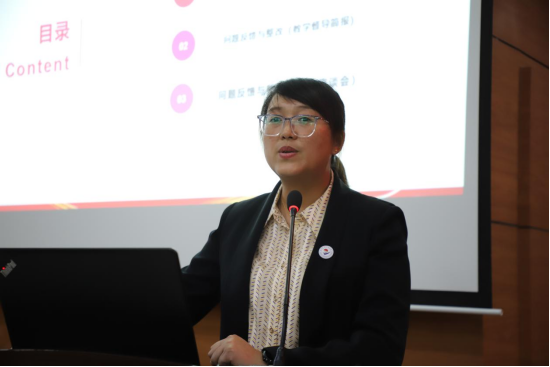 张静副院长代表学校对各位参与信息反馈工作的同学表示肯定。她指出,学校始终坚持“以学生为中心”开展教育教学活动,通过校领导听课,学校、各教学单位督导听课,学生信息反馈员反馈,最终目的就是想改进学生的学习方式、优化教师的教学方法,完善学校的教学管理。学生信息员的反馈是来自学生群体的,是最重要的,是教师无法代替的,是学校教育教学质量保障体系中的重要一环。张院长提出了三点希望:一是希望学生教学信息员能够提升认识,肩负时代重任,充分认识学生教学信息员在促进教师教学持续改进、建树优良学风方面发挥着重要作用;二是端正态度,认真履行职责,不断反思和改进自己的工作方式,提升信息反馈工作质量;三是服务师生,做好沟通桥梁,做好学校教学工作的好助手,为全面提高教学质量贡献智慧和力量。