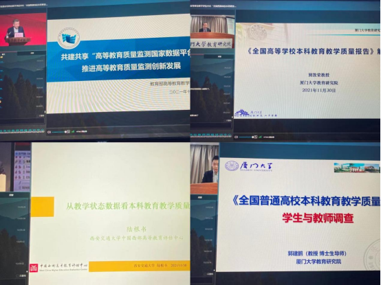 教育部高等教育教学评估中心主任范唯作开会报告,介绍了本科教育教学质量报告的特点及社会反响等,强调质量报告要起到存史、资政、预警、导研的作用。评估中心信息处处长吴四九对国家数据平台建设发展做了全方位、全系统的解读,以“数据共享中心”“集成服务中心”为国家数据监测平台发展目标。厦门大学教育研究院别敦荣教授向参会人员重点介绍了如何研制质量报告与落实效果,并以“2020年度质量报告”为例,详细解读了质量报告对教学工作的积极引导,研制质量报告坚持客观、真实、主流、积极、建设性等原则;西安交通大学陆根书教授通过从状态数据看本科教育教学质量报告,深入了解了数据填报的应用分析是对学校教育教学的激励,是对学校内部教学建设注入了原动力;厦门大学教育研究院郭建鹏教师以学生与教师调查为切入点,详细分析了当今师生在教育教学方面的实施评价及结果导向。